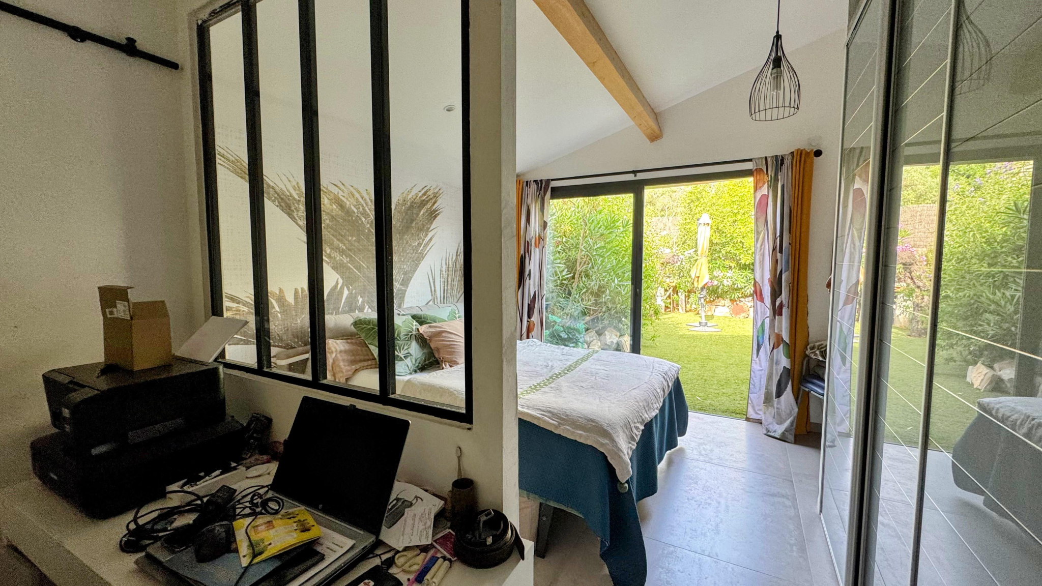 oUne chambre avec espace bureau verrière, terrasse et accès indépendant au parking (idéal télétravail ou bureau indépendant)