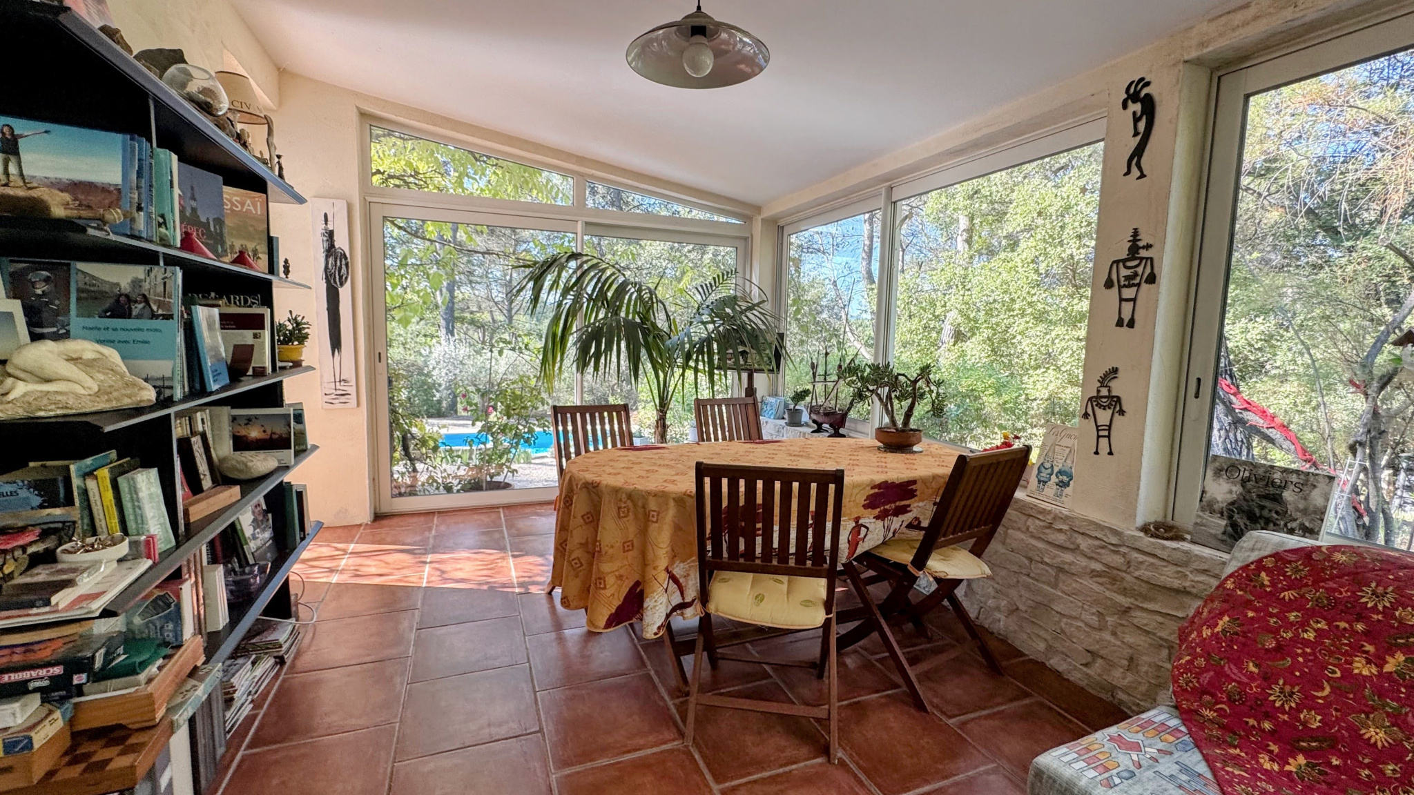 oUne véranda spacieuse offrant une vue imprenable sur la nature environnante,