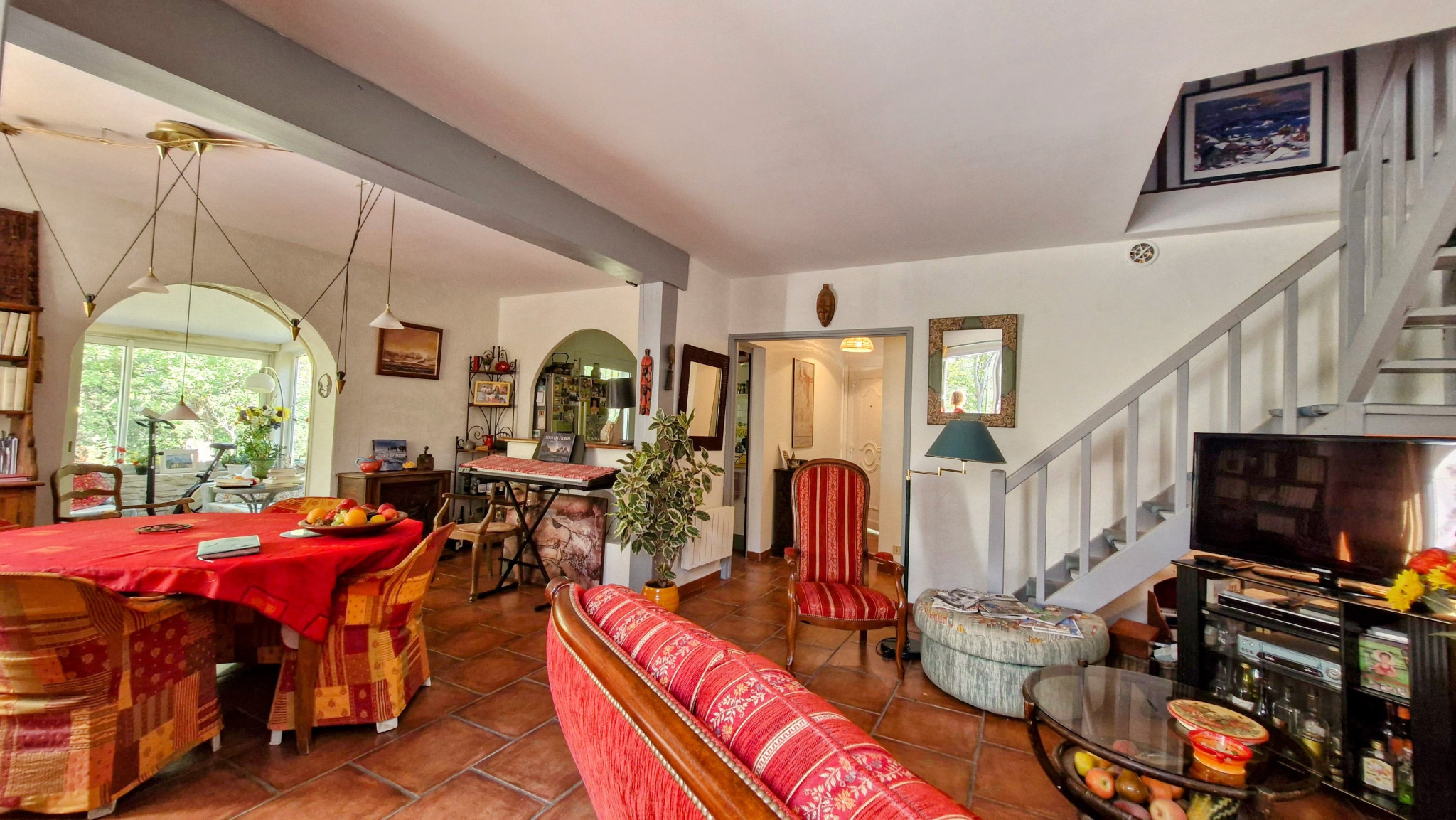 oUn séjour lumineux avec cheminée, idéal pour vos soirées d’hiver,