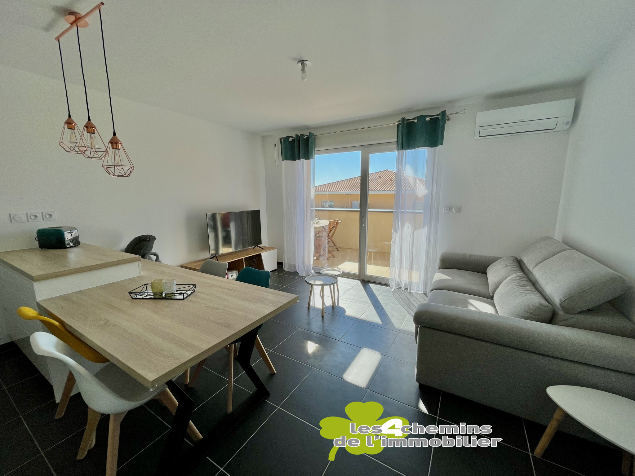 A VENDRE à moins de 15min d’Aix en Provence ( Meyreuil) l’agence Les 4 Chemins de l’Immobilier vous propose en exclusivité cet appartement COUP DE COEUR! dans une résidence neuve et sécurisée, au 2e et dernier étage composé de 3 pièces d’environ 59 m2 habitables comprenant une entrée avec placard, une belle pièce de vie avec une cuisine équipée donnant sur une terrasse avec une vue dégagée. Vous trouverez également 2 chambres avec placards aménagés, une salle de bains et toilette séparé. Climatisation réversible, chauffe- eau thermodynamique, logement connecté par box domotique . 1 placesde parkings en sous sol ( possibilité d’une deuxième ) . Bien en copropriété composée de 62 lots pas de procédure en cours. Charges annuels : 1080EUR A visiter rapidement! DPE A = 32kWh/m2_an emission de gaz à effet de serre A = 1 kgCO2/m2.an ancienne version date le 29/09/2020 Pour tous renseignements Patricia ROGNIN EI 06 38 91 17 51 ;
