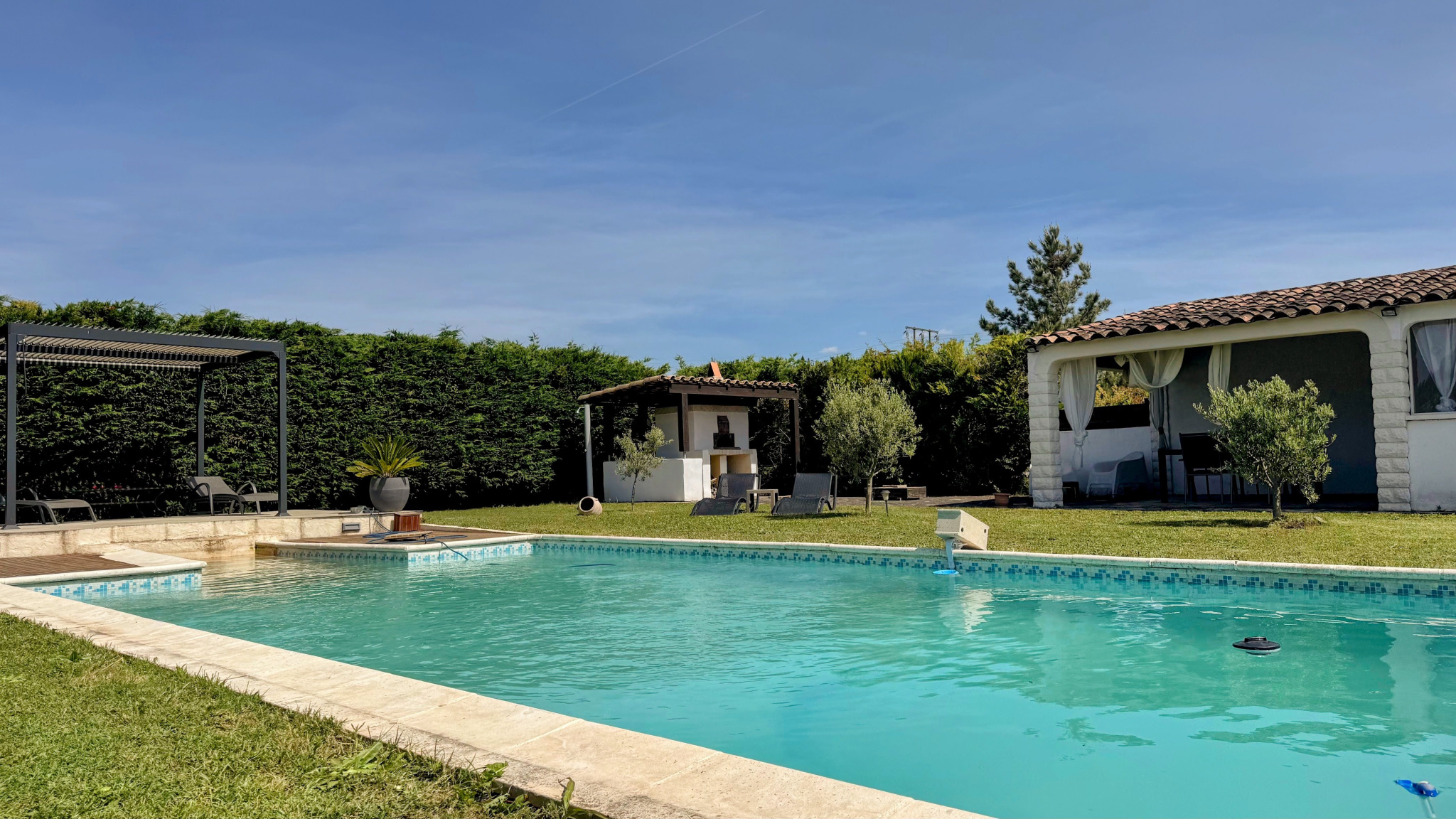 oPiscine avec pool house, cuisine d’été et four à pizza