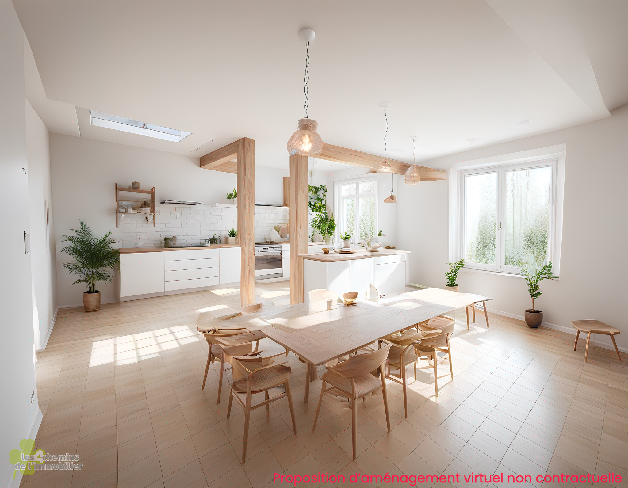 o2ème et dernier étage : grande cuisine, salle à manger, salon, WC et un balcon filant de 5 m2 environ.
