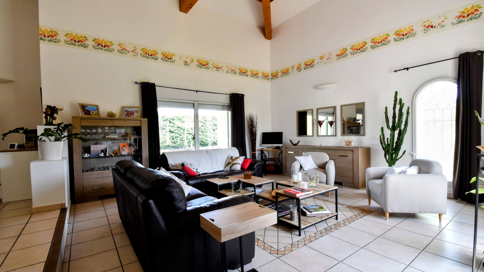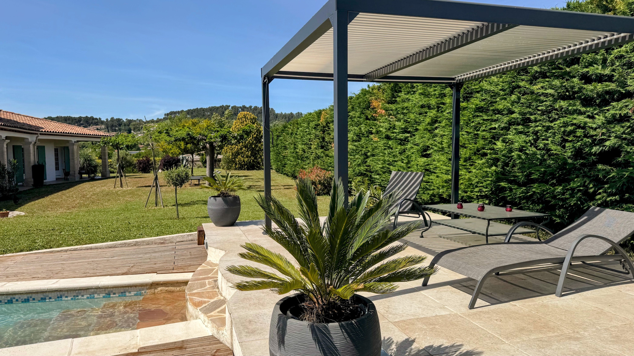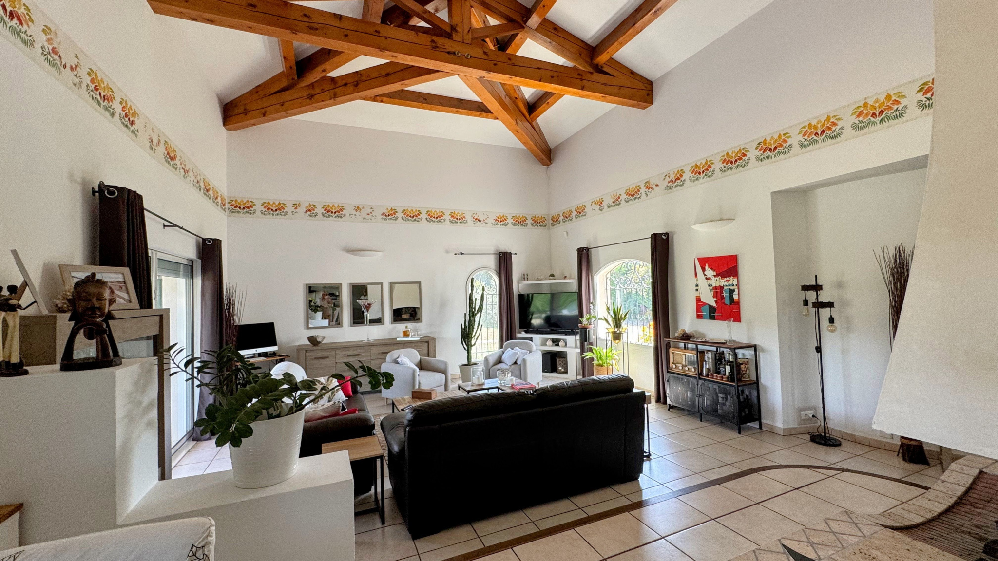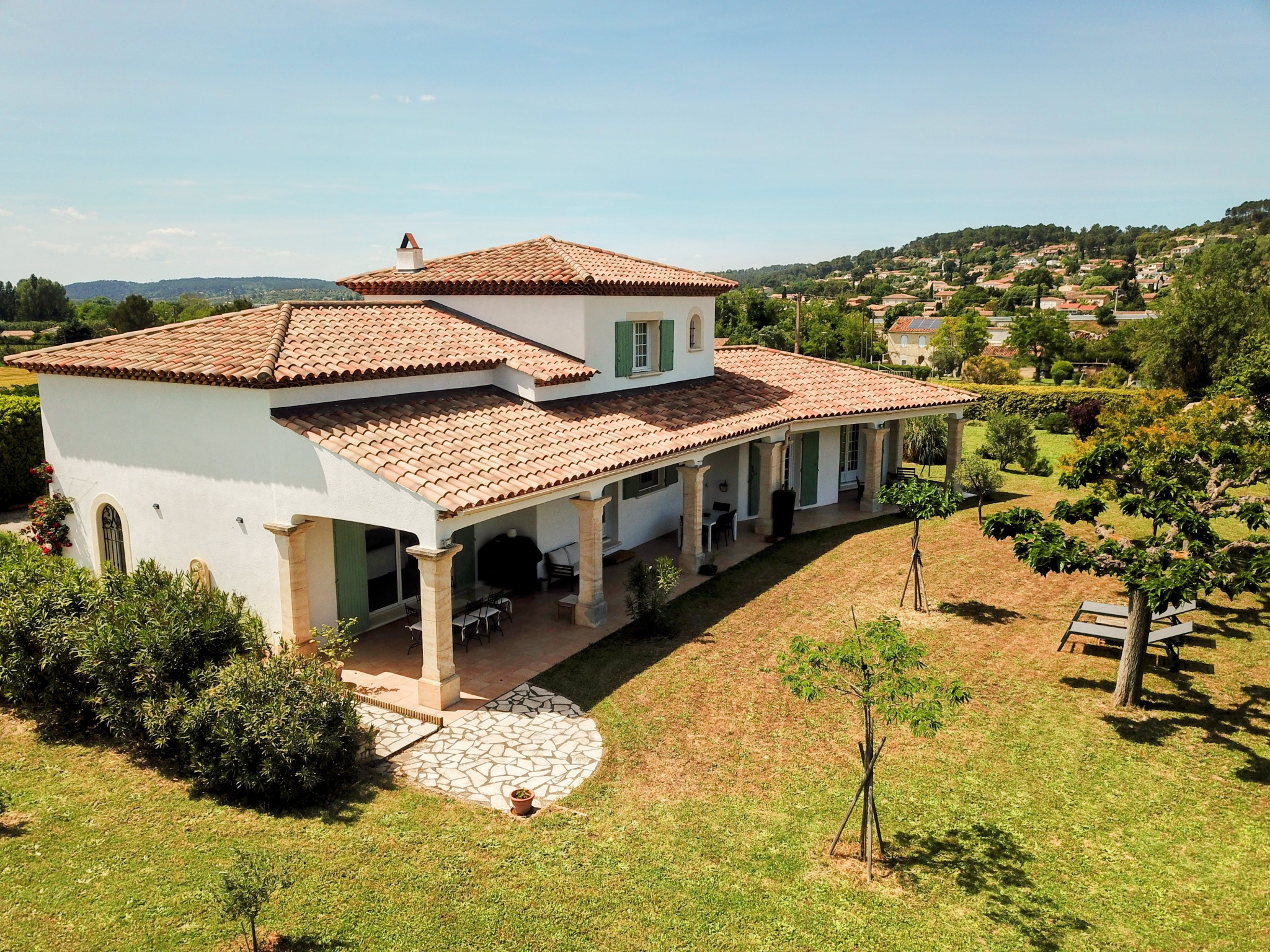 Meyreuil, villa d’environ 193 m2 sur 3856 m2 de terrain bénéficiant d’ une magnifique vue sur la Sainte Victoire avec piscine et cuisine d’été. Grandes pièces à vivre et beaux volumes de partout, séjour avec plafond cathédrale de 60m2 avec cheminée, cuisine américaine contemporaine aménagée et équipée, 3 chambres et un bureau au rez-de-chaussée, avec salle de bains et WC séparés. A l’étage, une suite parentale avec salle d’eau avec WC, et un dressing. Très belles prestations : construction de qualité, chauffage au sol, aspiration centralisée, jaccuzi, terrasse couverte. A seulement 10 minutes du centre ville d’Aix, rapide d’accès pour Aubagne ou Marseille.
