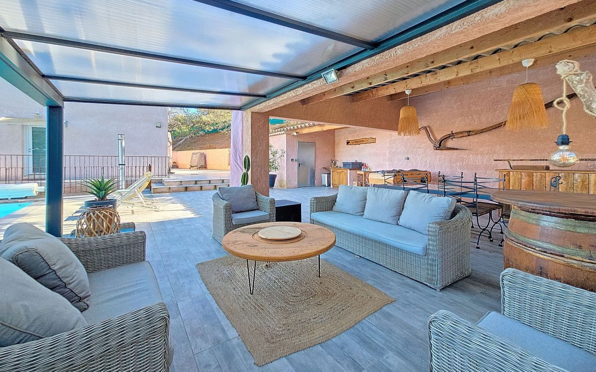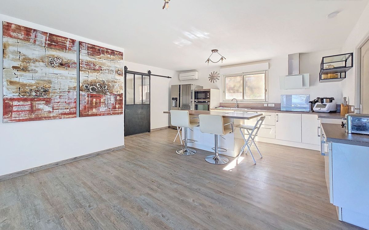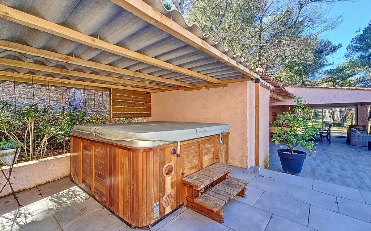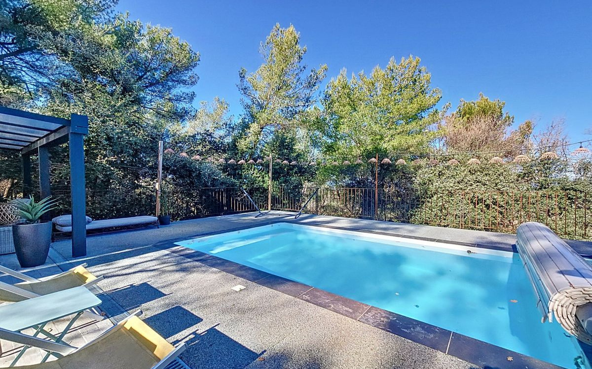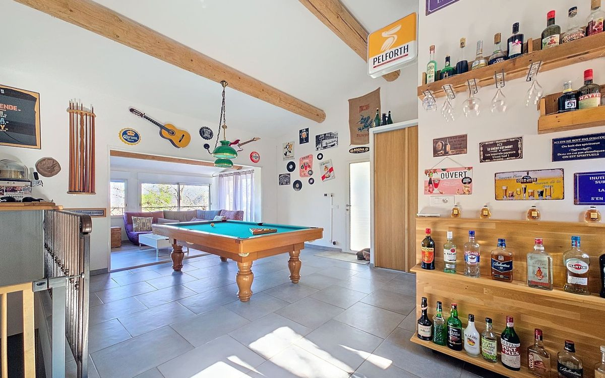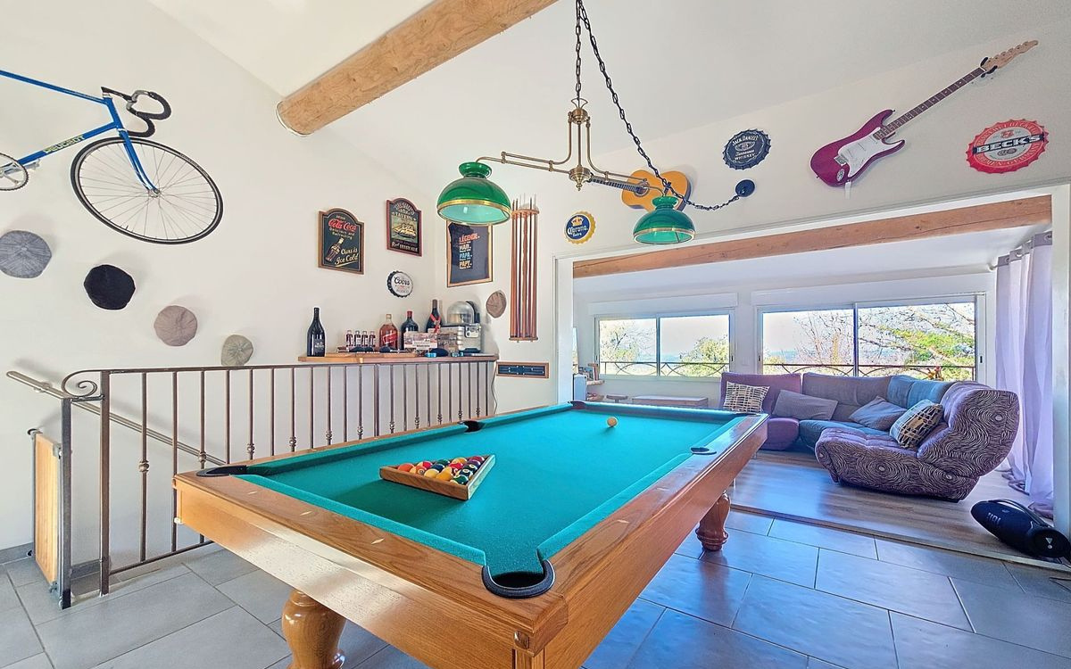 La villa est aujourd’hui organisée en un T3 lumineux côté Est, avec terrasse, et un T4 spacieux côté Ouest, profitant d’un accès direct à tous les espaces extérieurs : terrasse, piscine, cuisine d’été, jacuzzi et boulodrome.